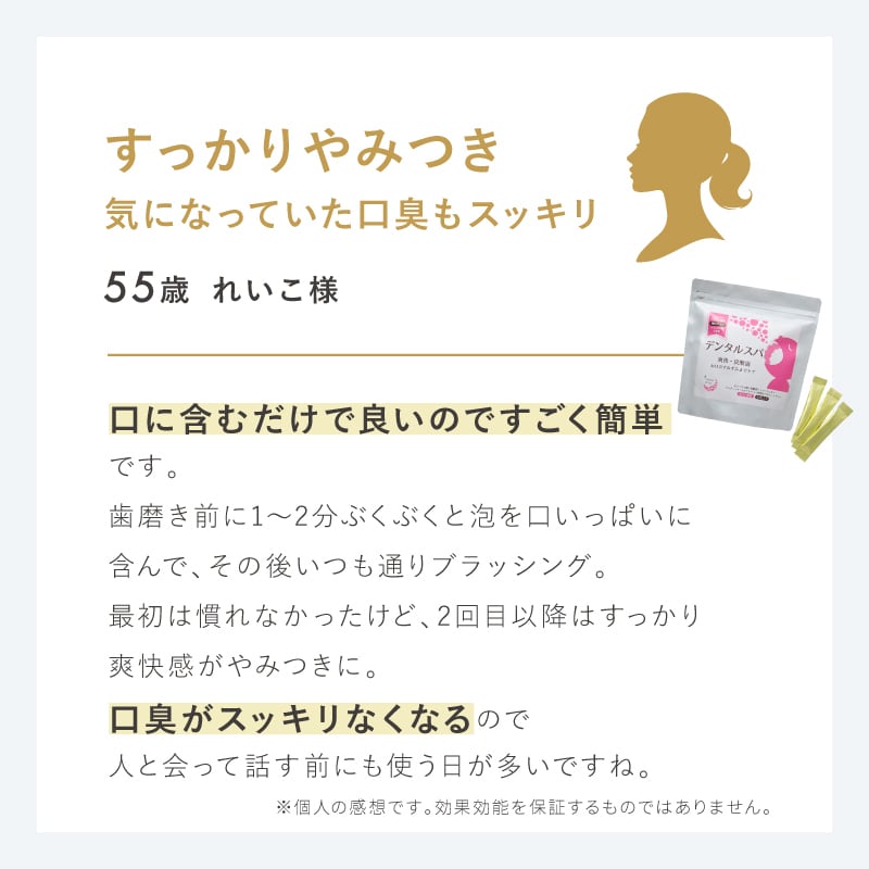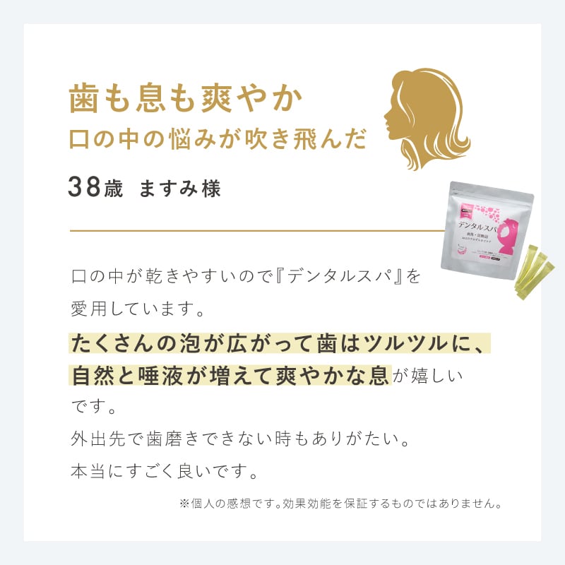 小分けになっていて持ち運びにも便利なので、人と会う前やお口の中の乾燥が気になる時にご利用いただくことで、口臭対策やドライマウス対策にも役立つ商品です。